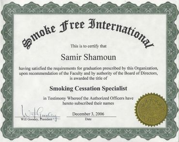 My name is Samir Shamoun I smoked 30 cigarettes a day for many years and stopped smoking on 10.06.2006 and quit from the first session, I went to a party the same evening everyone knew me as a smoker and some noticed I didn't lite up, they asked if I was sick?